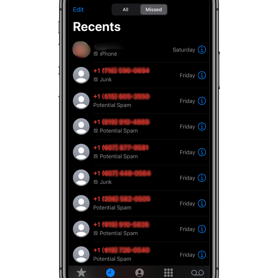 screenshot of missed calls all spam or potential spam